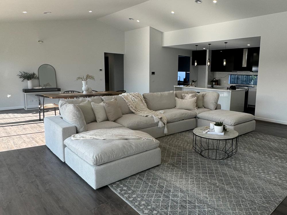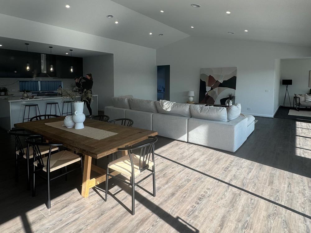 From the moment you step inside, this home radiates quality. The 3.6-metre vaulted ceilings and multiple sliding doors flood the open-plan living area with natural light, creating a sense of freedom and flow throughout the space. The hybrid timber flooring complements the home’s warm, contemporary palette, adding to its inviting, refined atmosphere.