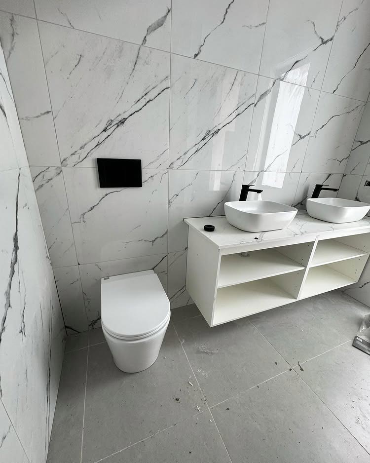 The master suite, located at the front of the home, provides a luxurious retreat. Complete with stone-look tiles, a double vanity, double shower, in-wall toilet cistern, and a generous walk-in robe, the ensuite combines form and function in perfect harmony.